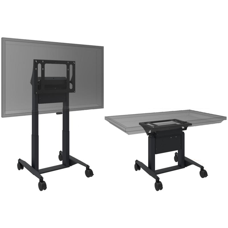Die Halterung ist für Displays bis zu einer Größe von 75 Zoll geeignet und hat eine maximale Tragkraft von 100 kg. Der VESA-Standard wird von 200 x 200 bis 600 x 400 unterstützt, optional ist auch eine Erweiterung bis 800 x 600 möglich. Die Höhenverstellung ist ein besonderes Merkmal des Tilt&, Table und macht ihn ideal für Anwendungen in Büros, Konferenzräumen, Schulen oder anderen öffentlichen Einrichtungen. Mit der Höhenverstellung können die Displays einfach und bequem an die individuellen Bedürfnisse und Anforderungen angepasst werden.