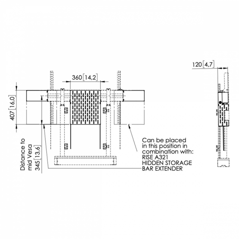 Mit praktischem Zubehör können Sie einen motobetriebenen Display-Lift in eine Komplettlösung verwandeln. Das Zubehör umfasst auch eine Soundbar-Halterung oder eine Videokonferenz-Kameraablage. An den Display-Lifts können sowohl oberhalb als auch unterhalb des Bildschirms verschiedenste Accessoires angebracht werden.