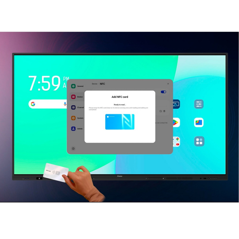 Google EDLA Zertifikat NFC Reader Bildschirmdiagonale: 55 Zoll Auflösung: UHD 3840 x 2160px Android 14 Betriebssystem Helligkeit: 450 cd/qm Inklusive 4 Stifte 40 Punkte TouchscreenDas iiyama ProLite TE5513A-B1AG überzeugt mit einem 55-Zoll 4K-UHD-Display, das eine gestochen scharfe Darstellung für Präsentationen, Schulungen und digitale Zusammenarbeit bietet. Die IPS-Panel-Technologie sorgt für brillante Farben und einen weiten Betrachtungswinkel von 178Grad, sodass Inhalte aus jeder Position im Raum optimal sichtbar bleiben. Dank der Anti-Glare-Beschichtung werden Reflexionen minimiert, während die antibakterielle Glasoberfläche für hygienische Nutzung im Bildungs- und Unternehmensbereich sorgt.