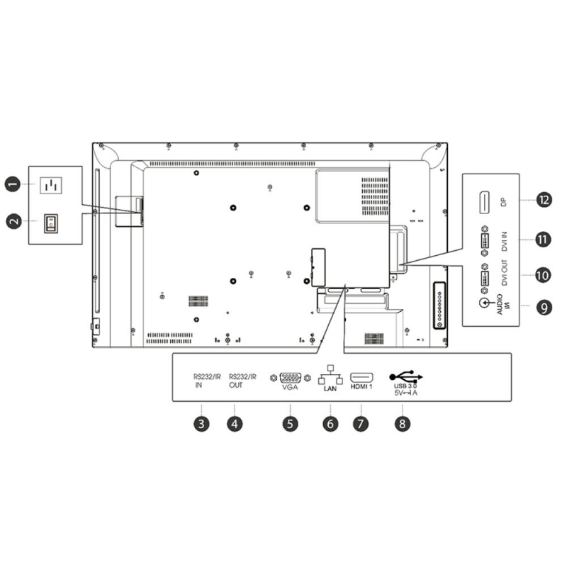 UHD Display 43 Zoll (108,00 cm) Features Helligkeit: 500 cd/m2 Auflösung UHD 4K (3840x2160 Pixel) Laufzeitfreigabe 24/7 Stunden Android 9.0 Betriebssystem