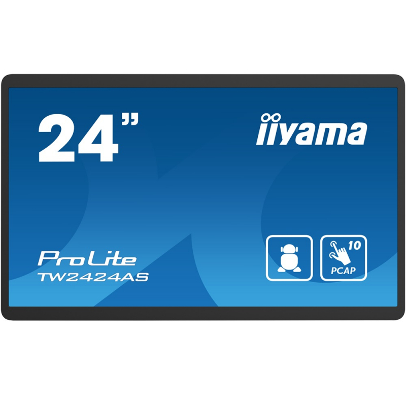 Auflösung: FullHD 1920p x 1080p Schwarzes oder weißes Gehäuse Bildschirmdiagonale: 24 Zoll (60,5 cm) 10 Touchpunkte Integriertes Android 12 System mit Google Play Store Querformat, Hochformt, Face-Up-Position 24/7 Dauerbetrieb möglich