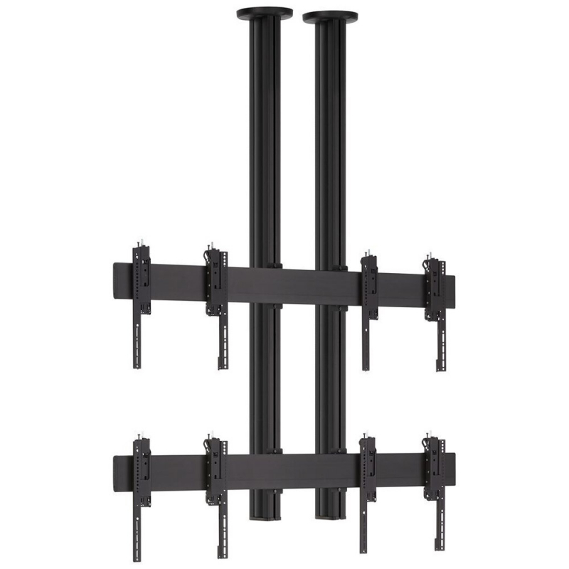 Das 2x2 Videowall Gerüst CVW2255 kann 4x 46 - 55 Zoll Displays tragen mit seinen 2x sehr starken Deckenhalterung. Die Deckenhalterung wird aktiv in der Decke befestigt und kann nach moniterung und Aufbau noch feinjustiert werden mit der Serviceposition.