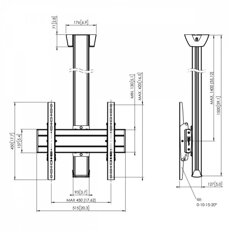 Die Deckenhalterung C 1544 ist für Fernseher mit einer VESA-Norm von 400 x 400 und einem Gewicht von bis zu 80 kg geeignet. Sie kann bis zu 20Grad geneigt werden. Und das Kabelführungssystem sorgt dafür, daß sämtliche Kabel aus dem Sichtfeld verschwinden. Diese Halterung ist besonders stabil und robust. Schließlich steht Sicherheit bei Vogels immer an erster Stelle.