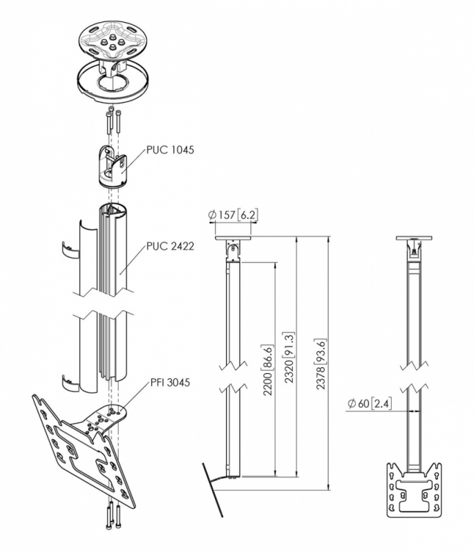 VESA Lochmuster 100 mm x 100 mm, 100 mm x 200 mm, 200 mm x 100 mm, 200 mm x 200 mm, 200 mm x 300 mm, 300 mm x 200 mm, 300 mm x 300 mm, 400 mm x 200 mm, 400 mm x 300 mm, 400 mm x 400 mm
