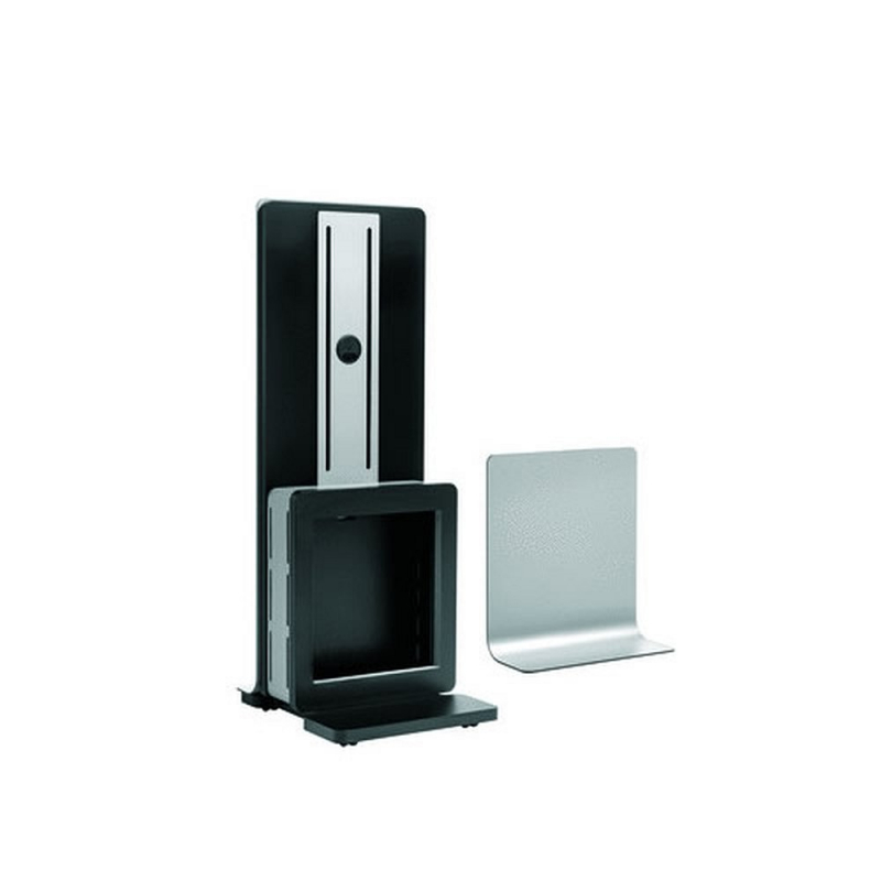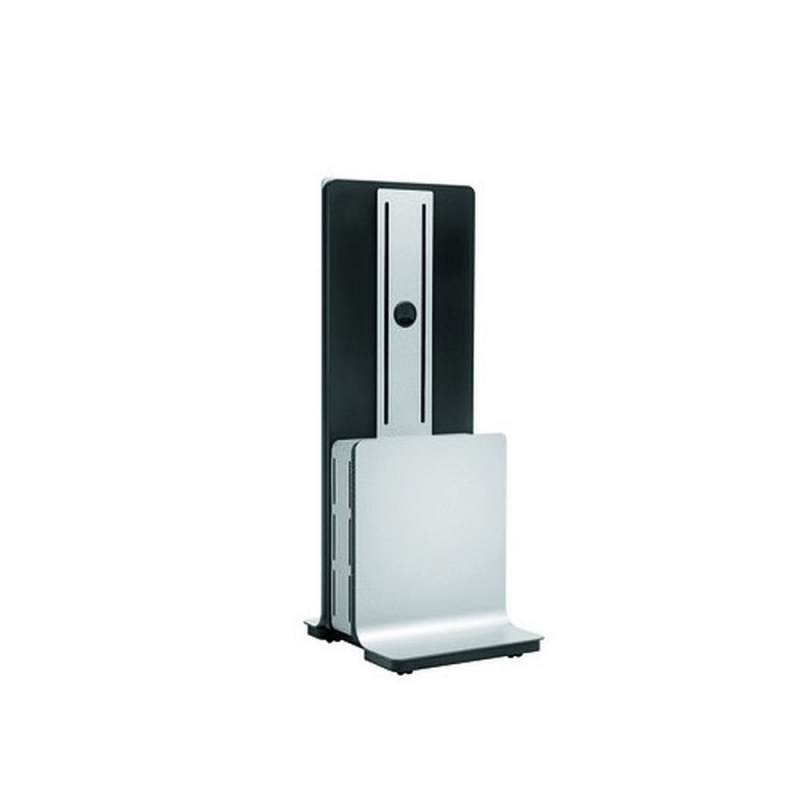 hübschen Standfuß lassen sich alle benötigten Multimediageräte problemlos unterbringen. Das Bewegen ist dank der Räder sehr einfach und zeitsparend. Der PFF 5100 kann mit Einzel- oder Dualdisplays eingesetzt werden. Optional können auch Videokonferenzkamera oder Lautsprecher per Spezialhalter PFA 9110 befestigt werden. Mit einem Display im Hochformat lässt sich das Videokonferenzsystem auch sher gut als Kiosksystem einsetzen. Die Aluminiumverkleidung an der Vorderseite kann einfach entfernt werden, um an die Geräte im Inneren des Standfußes zu kommen.