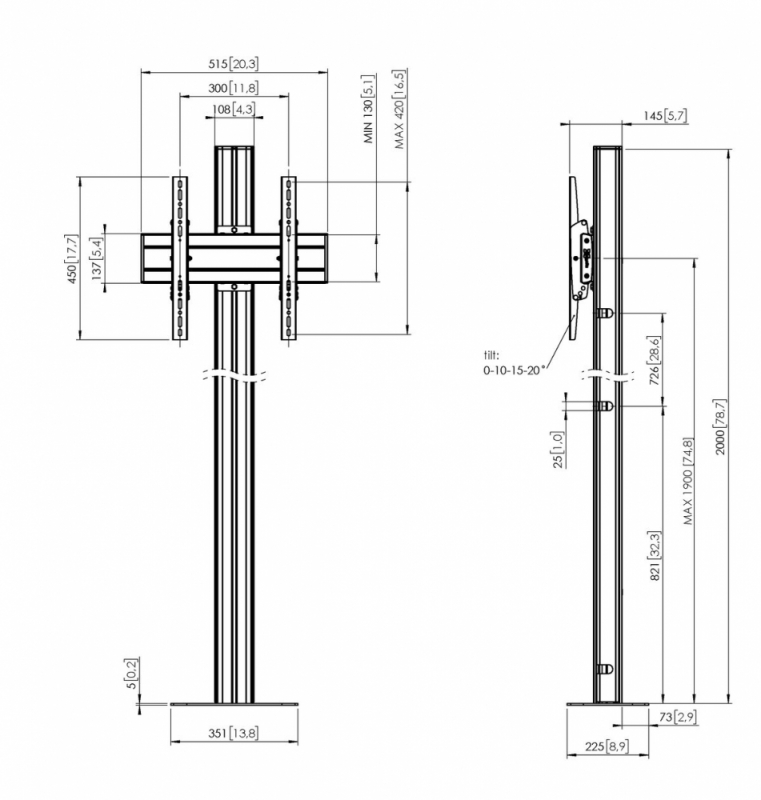 VESA Lochmuster 100 mm x 100 mm, 100 mm x 200 mm, 200 mm x 100 mm, 200 mm x 200 mm, 200 mm x 300 mm, 300 mm x 200 mm, 300 mm x 300 mm, 400 mm x 200 mm, 400 mm x 300 mm, 400 mm x 400 mm