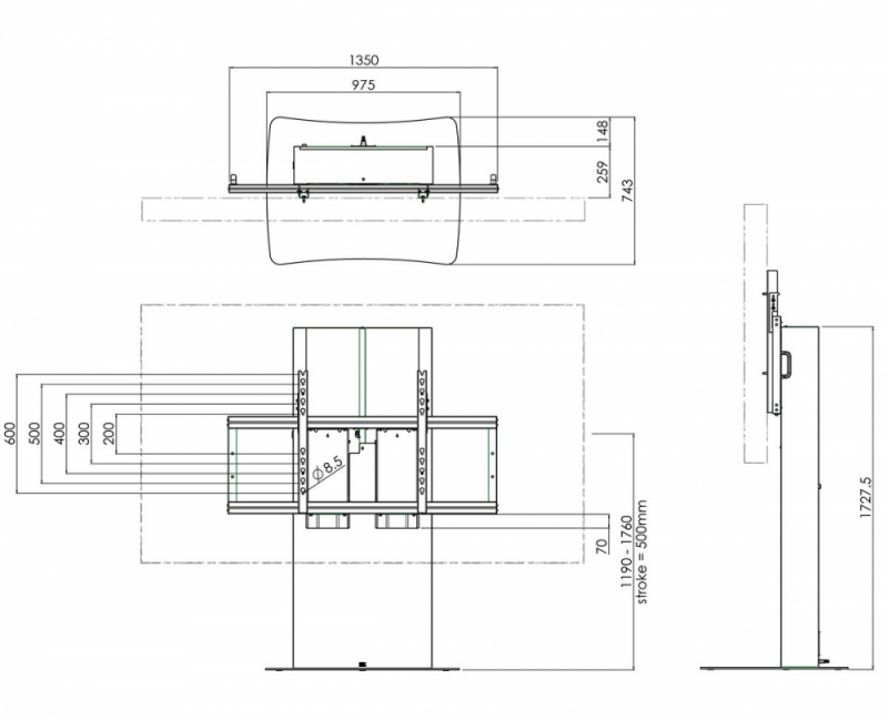 Der perfekte Wagen für das Büro Der frei stehende Wagen S062.2905 kann motorisch in der Höhe verstellt werden und Displays bis 98 Zoll tragen, wobei die Höchstlast beeindruckende 180 Kilo beträgt. Die Höhe des Bildschirms läßt sich elektrisch von 1190 bis 1760 mm und manuell um weitere 70 mm verstellen. Damit ist dieser Wagen ideal für Besprechungsräume und Sitzungßäle. Für feste Bildschirmpositionen gibt es andere Modelle.