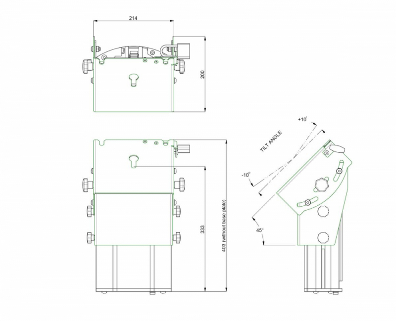 Mit unserer beweglichen Bodenplatte und der Miethalterung mit Dreipunktkupplung kombinierbarNeigungsfunktion +35Grad bis +55Grad