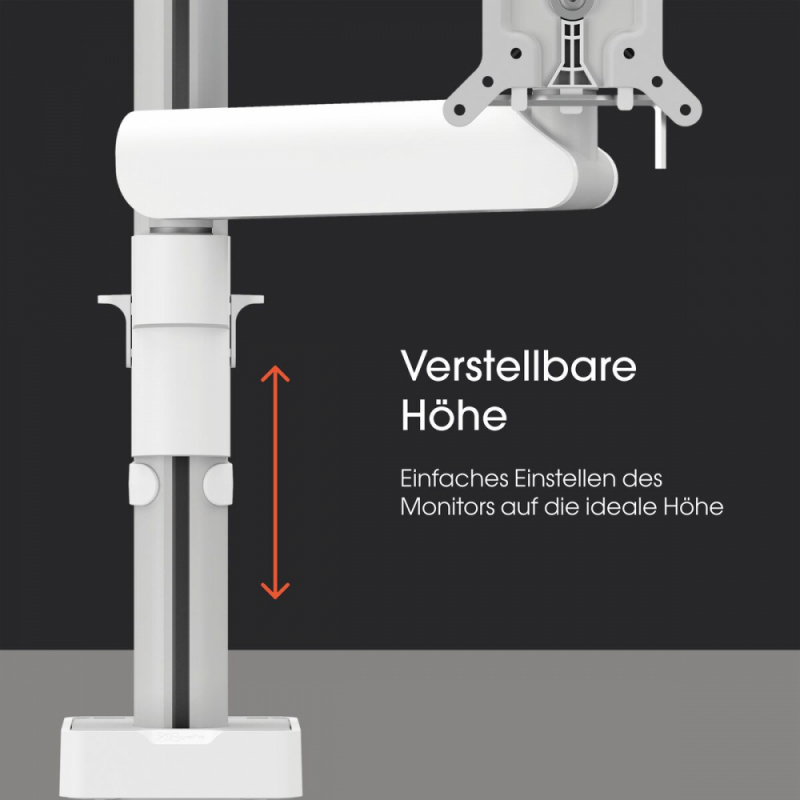 Dank des Drehpunktes kann der Benutzer immer perfekt ergonomisch arbeiten. Die Einstellung der idealen Bildschirmposition ist einfach. Als Teil von MOMO Motion verfügt der Monitorarm über eine spezielle Klemmkonstruktion. Dieser Mechanismus ermöglicht es Ihnen, den Monitor in der richtigen Höhe zu positionieren. Da der Monitor nicht mehr auf dem Schreibtisch steht, entsteht außerdem viel mehr Platz,um ergonomisch zu arbeiten.