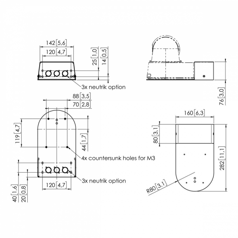 Ausgestattet mit Ausbrechplatten für die Verkabelung und Verbindungßtecker der Neutrik D-Series, Verbindungen hinter der Abdeckung.
