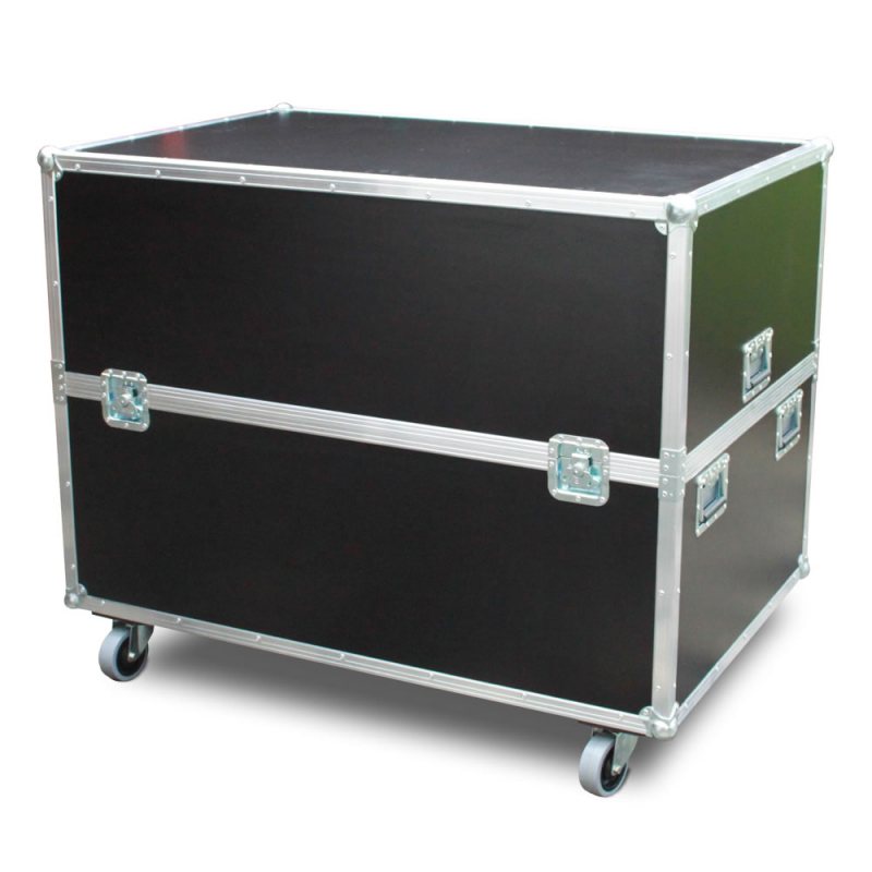 Nutzen Sie den Transportkoffer für Zubehör und Sonstige Inhalte. Der Koffer ist optimal für Veranstaltungen, Messen oder Montagen. Die Wand besteht aus 9mm dicken Sperrholz in der Farbe Schwarz Phenol. Sie haben 6 Griffe zu verfügung um den Transportkoffer zu schieben, tragen oder den Deckel zu öffnen. Mit den 4 Butterflyverschlüsse können Sie Ihren Koffer schnell sowie einfach auf und zu machen. Eine imprägnierte Teppichverkleidung ist im Koffer vorhanden. Der Koffer besitzt außerdem 4 Rollen, davon sind 2 mit Bremsen. Das Außenmaß des Rollkoffers beträgt (BxHxT) 1200x990x800 mm.