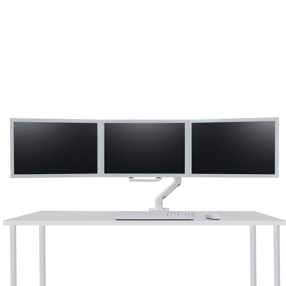 Das HX Triple Monitorarm-Kit lässt sich einfach an einem Tisch befestigen. Große Monitore bis zu 42 Zoll und einem Gewicht von bis zu 19 kg sind für den Monitorhalter kein Problem. Der Monitorarm hat einen Drehbereich von 180°. Der Monitorhalter ist erweiterbar mit einem Monitorarm.