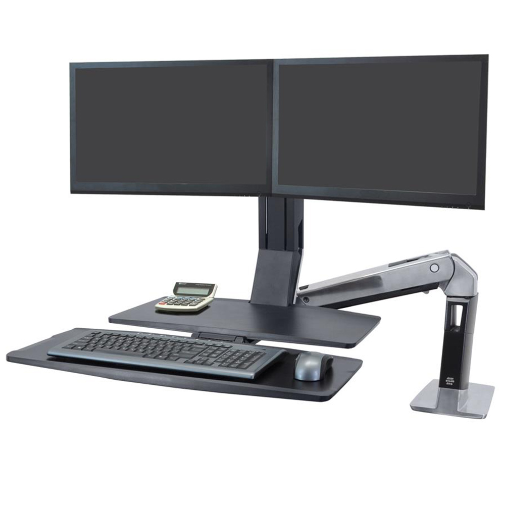 Der WorkFit-A Dual Monitor bietet eine hohe Ergonomie durch die Höhenverstallbarkeit. Die Tastaturablage ist einklappbar und somit wird mehr Platz und Bewebgungsfreiheit garantiert, wenn man die Arbeitsfläche nicht benutzt.