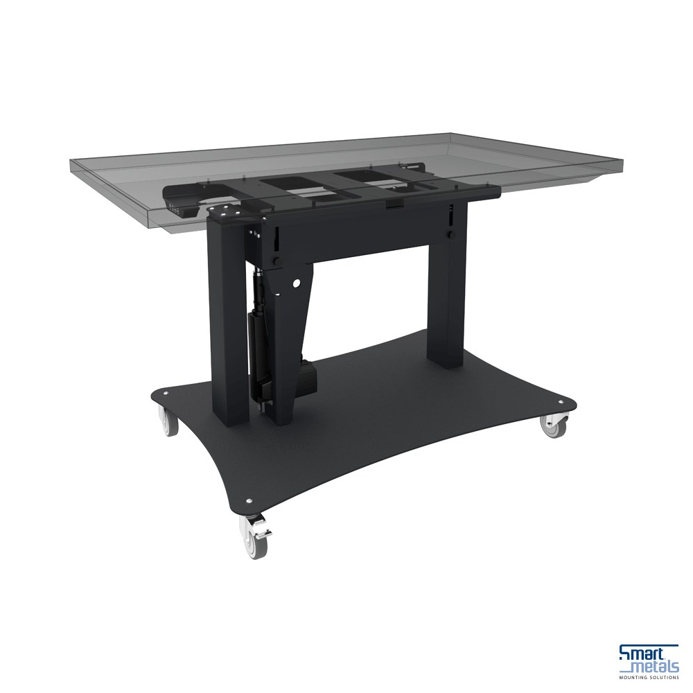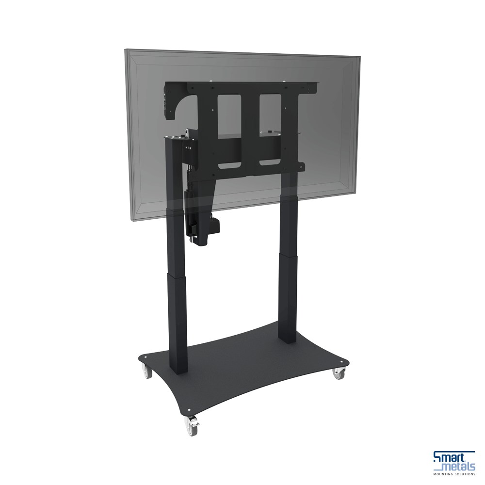 Dieser Rollwagen von Smart Metals wurde speziell für Displays entwickelt, die vertikal oder in einer Tischposition im Landscape Modus verwendet werden sollen. Das Display kann elektrisch in die vertikale oder in die Tischposition gebracht werden.
