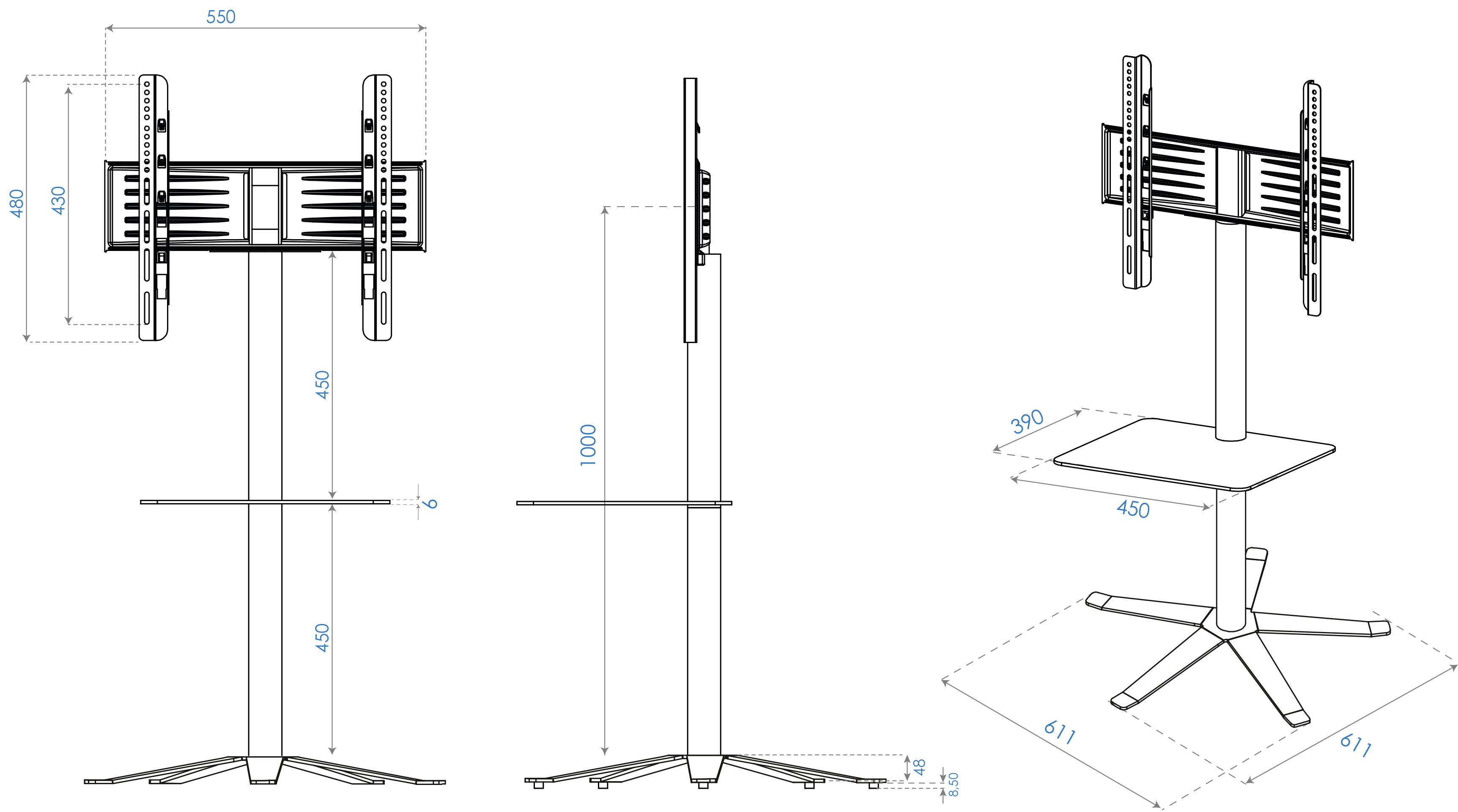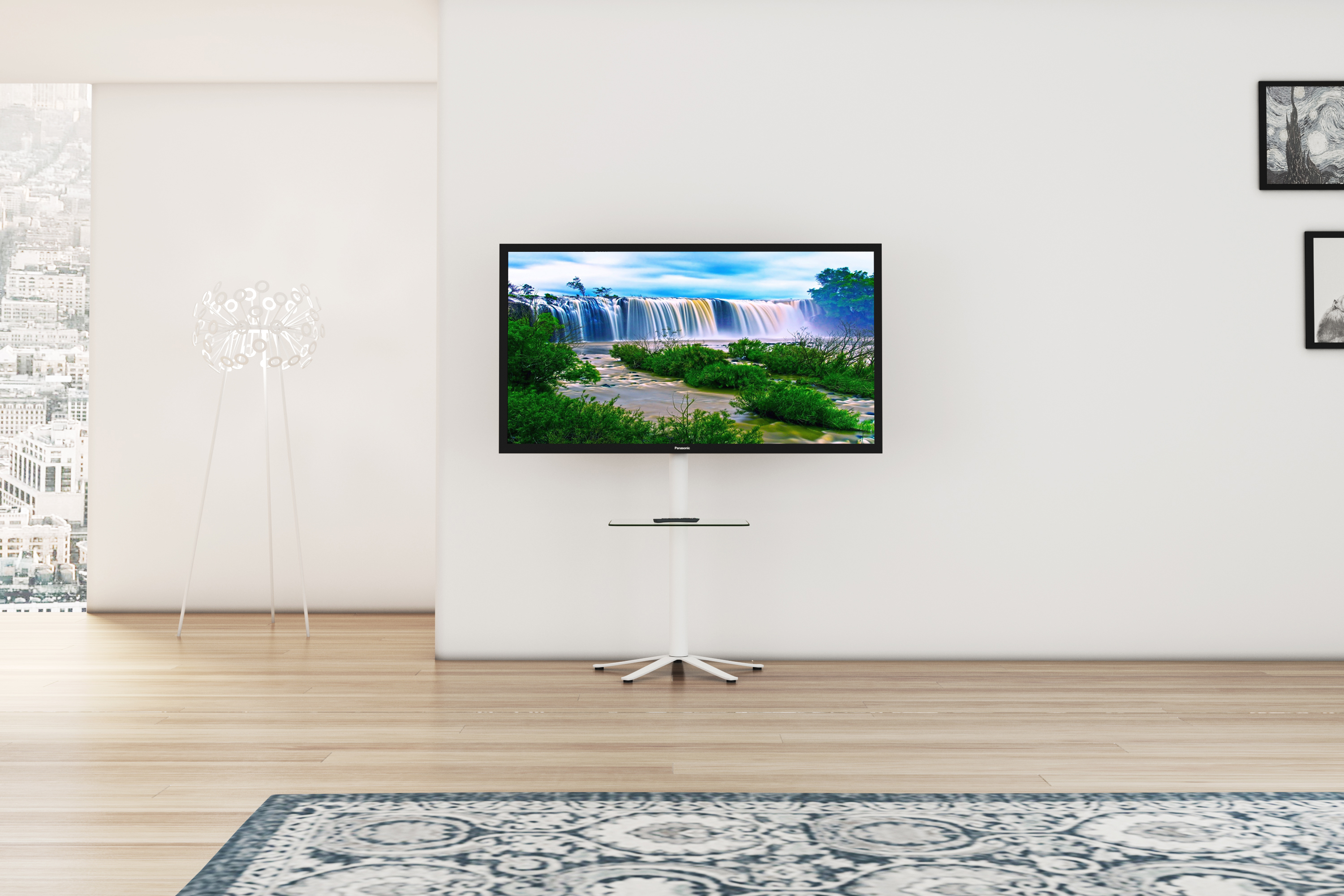 VCM TV-Standfuß LED Ständer Fernseh Standfuss Stahl Universal Xila Zwischenboden Universell VESA Weiß-Klarglas VCM TV-Standfuß Xila ohne Zwischenboden.