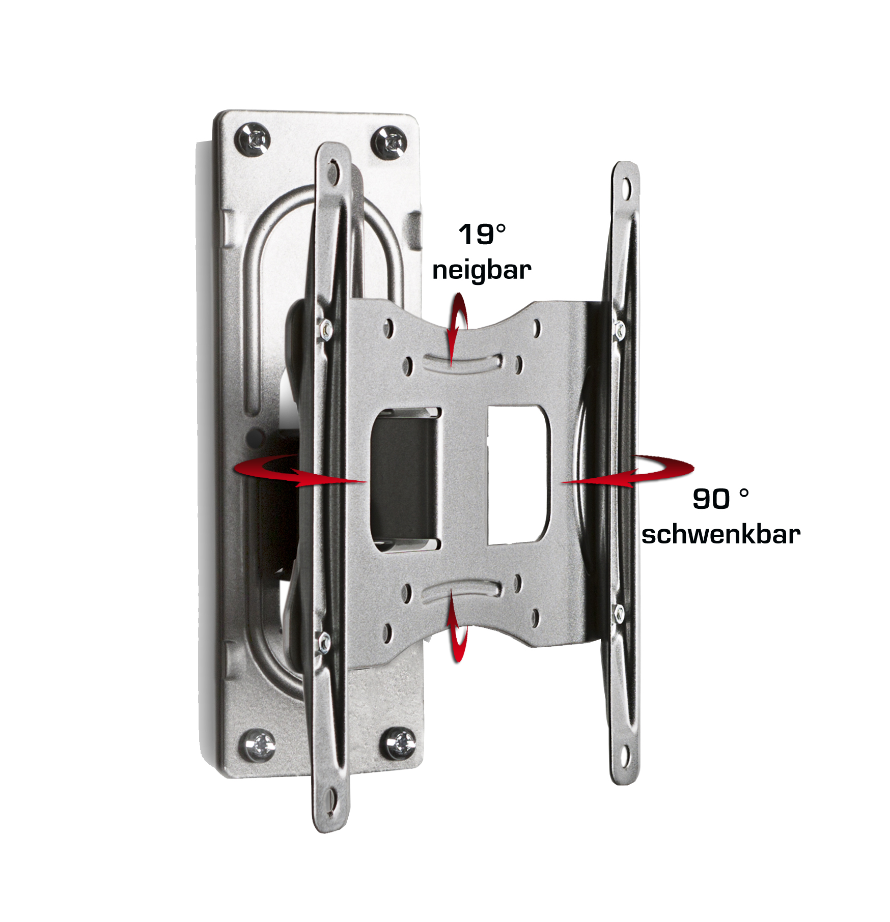 Die Halterung ist 19 Grad neigbar und hat einen Schwenkradius von bis zu 90 Grad seitlich.
