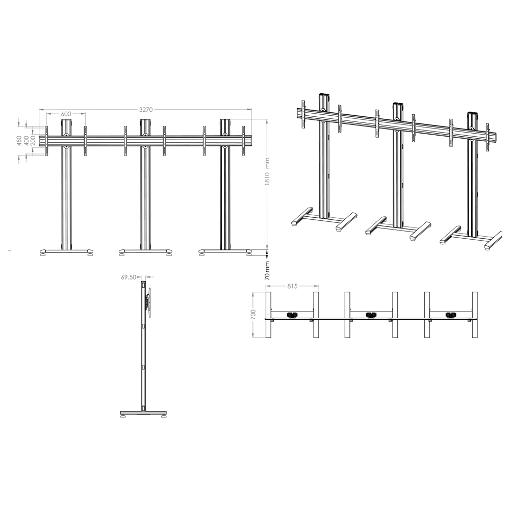 TV-Standfuß Mobil Base für Monitore von 55-70 Zoll 1x3